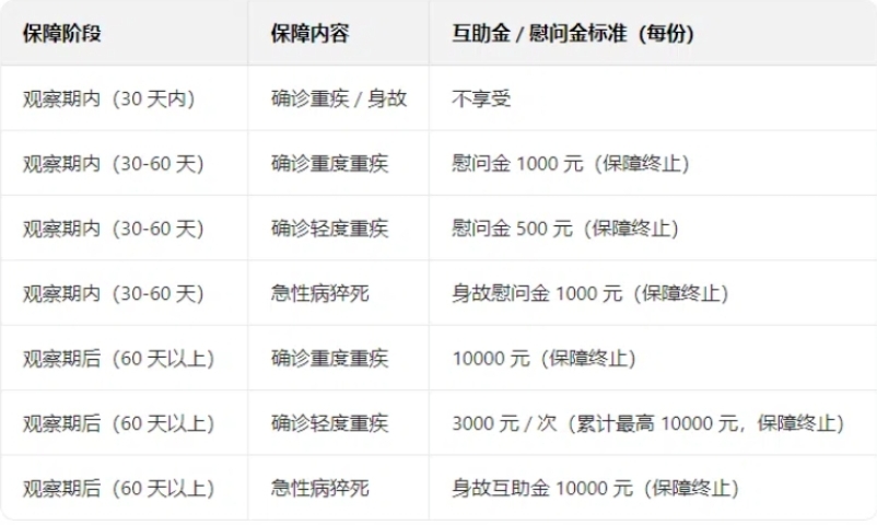 在原保障病种基础上大幅拓展,涵盖35种重度疾病+25种轻度疾病,不仅包含恶性肿瘤、严重脑中风后遗症等高发重疾,更将常见轻症纳入保障,早筛早诊也能获赔,为健康筑起双重防线。